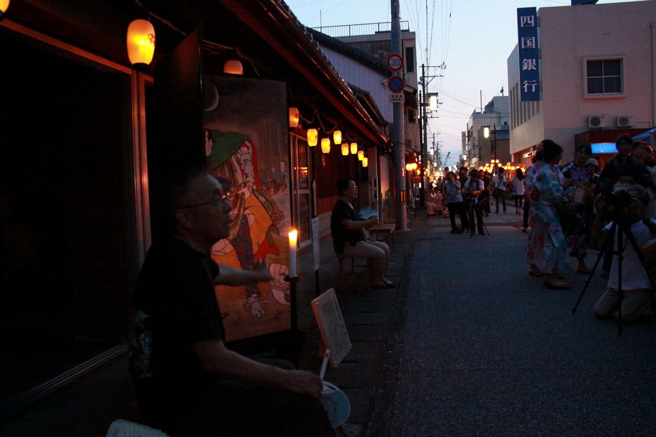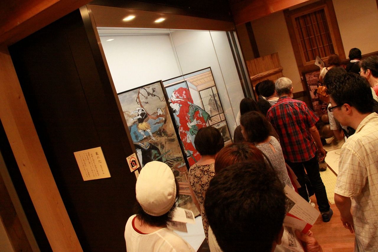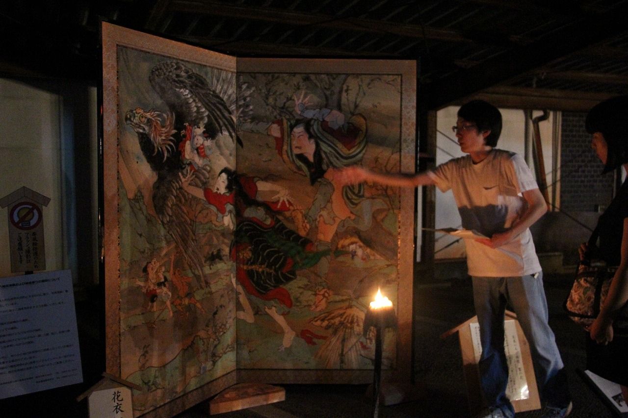 絵金芝居絵屏風を陰から支える、屏風装たち。